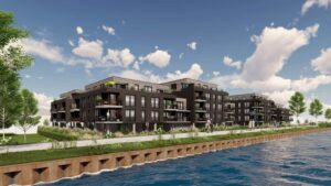 Grundstück und Entwurf für „Wohnen am Wasser – Exklusives Quartier am Grimberger Pier“